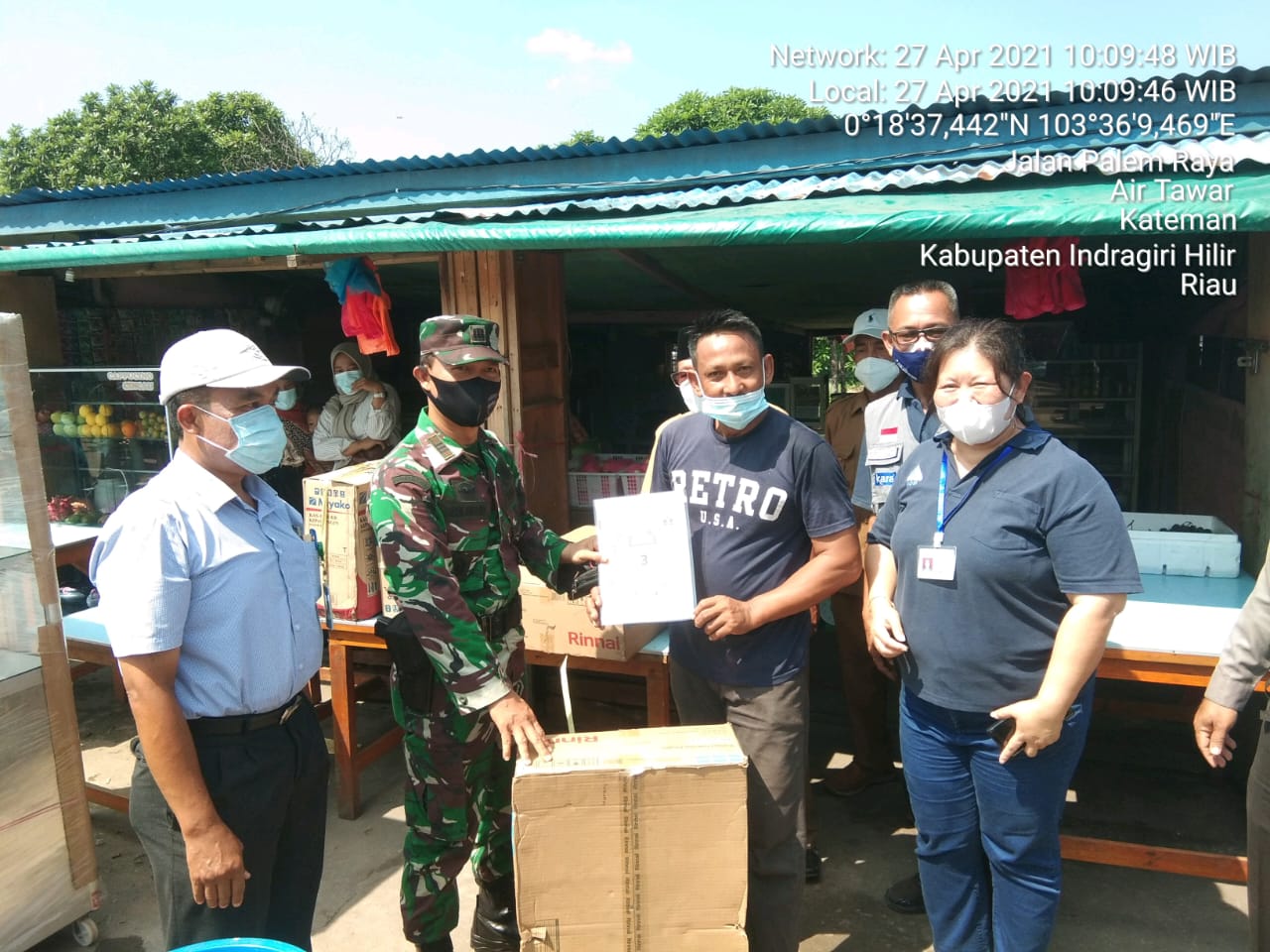 Danramil 06/Kateman Dampingi Penyaluran Hadiah untuk Warung Taat Protkes di Desa Air Tawar