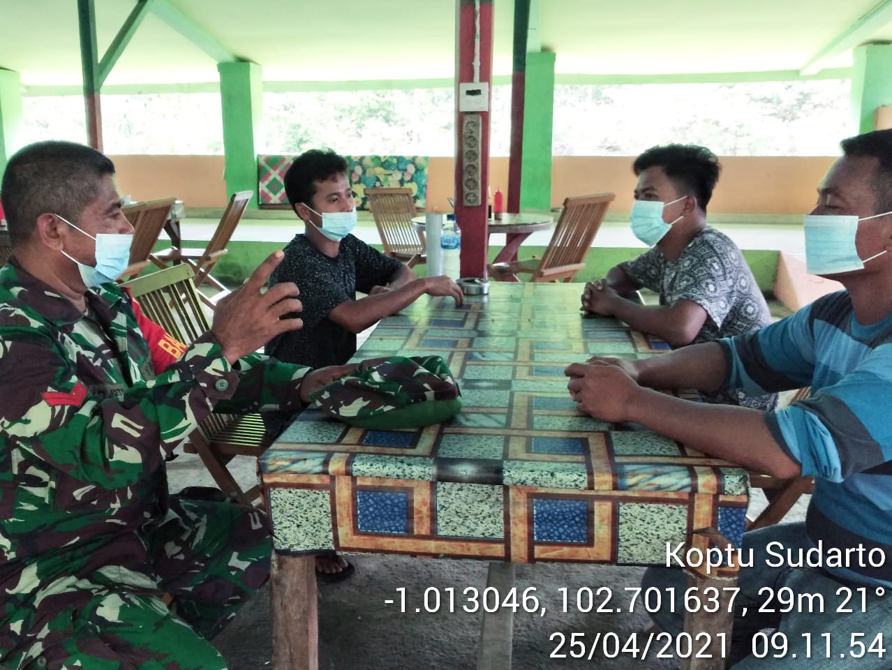 Himbau Masyarakat untuk Tidak Mudik, Babinsa Koramil 06/Kateman Komsos dengan Warga
