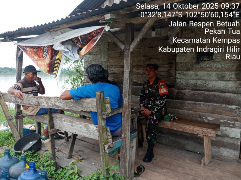 Sinergi Babinsa dan Warga: Jaga Desa, Nikmati Mentari Pagi di Tepi Sungai Indragiri