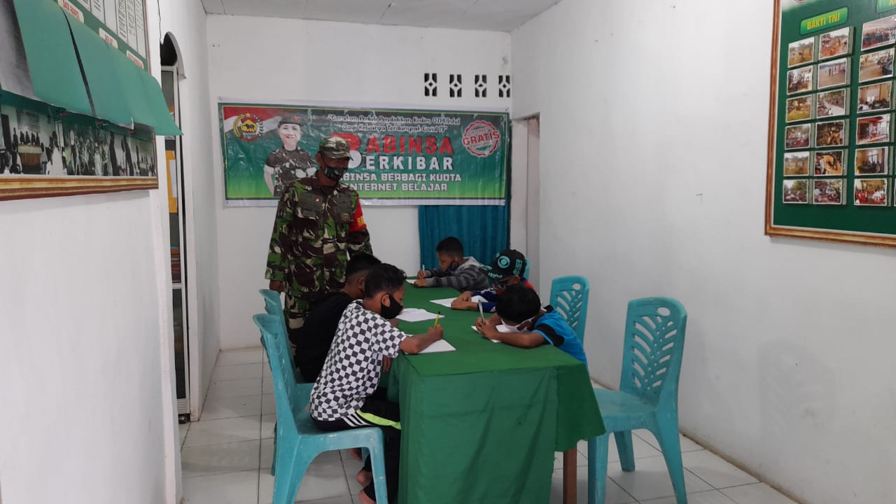 Koramil 03/Tempuling Kodim 0314/Inhil Intens Bantu Siswa Belajar Daring Dengan Sediakan WiFi Gratis