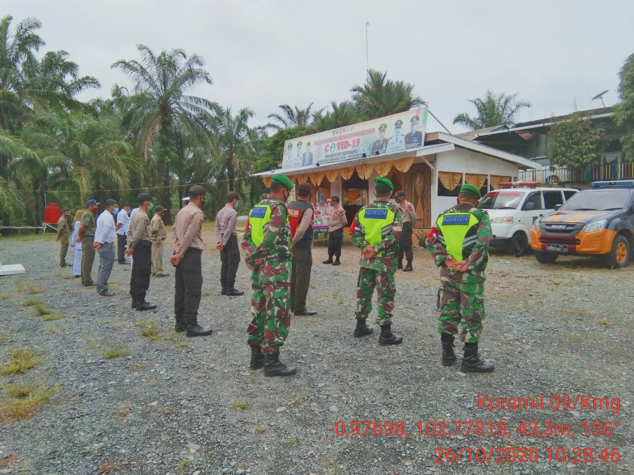 Babinsa Koramil 09/Kemuning Kodim 0314/Inhil Ikuti PAM di Posko Covid-19 Perbatasan Riau-Jambi