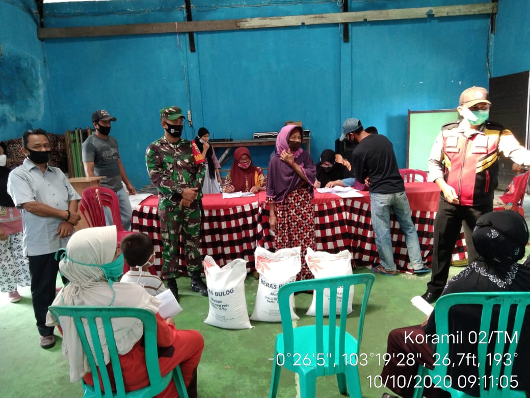 Babinsa Koramil 09/Kemuning Kodim 0314/Inhil Dampingi Penyaluran Beras Dari Kemensos
