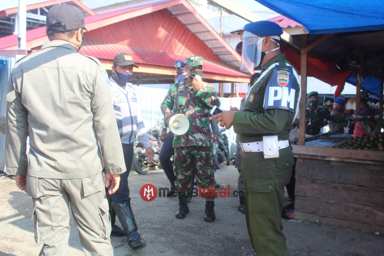 Pasar Sungai Salak Jadi Sasaran Satgas Penegakan Disiplin Covid-19 Oleh Anggota Koramil 03/Tempuling