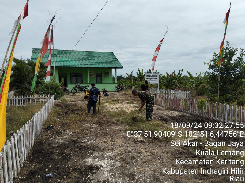Jaga Kebersihan, Babinsa Koramil 03/Tpl Dibantu Warga Binaan Laksanakan Goro Bersihkan Pos Ramil Kempas