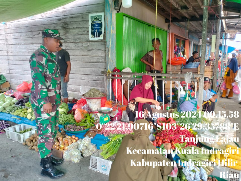 Babinsa Koramil 04/Kuindra Sampaikan Kepada Masyarakat Untuk Jaga Kebersihan Pasar