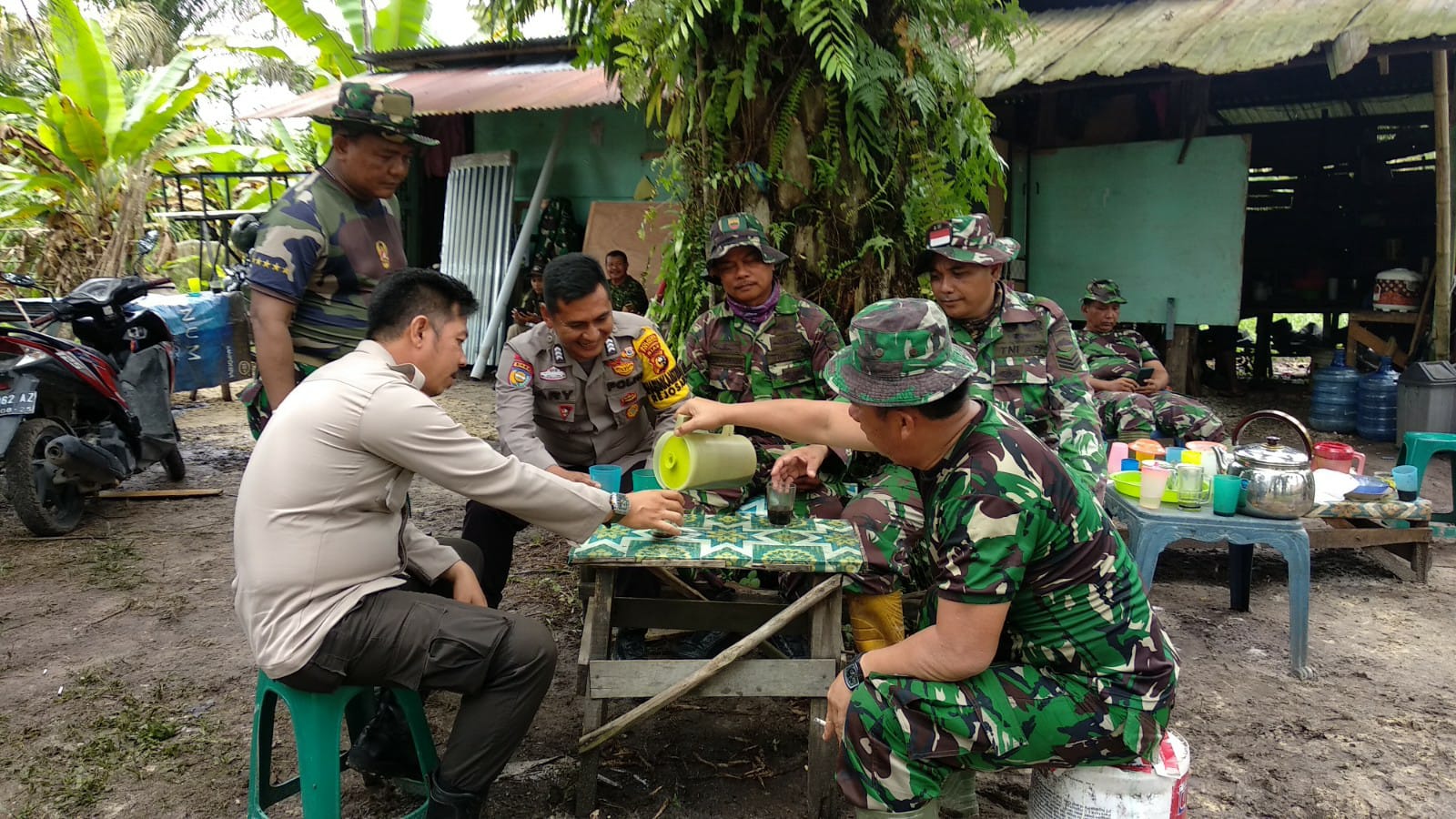 Secangkir Kopi Terjalinnya Sinergitas TNI-Polri di TMMD Kodim 0301/PBR